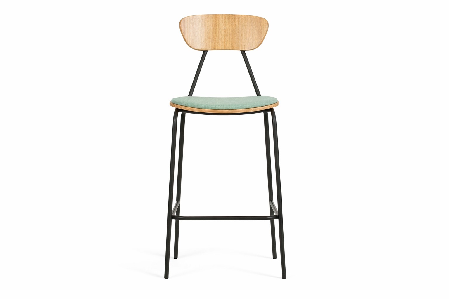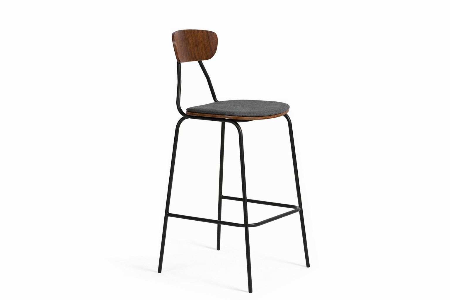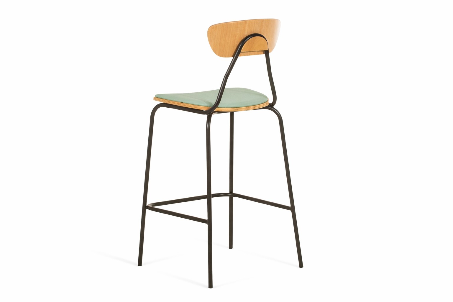 A banqueta Collega possui estrutura fabricada em metal, somada ao seu assento laminado e estofado e encosto com acabamento em laminado.