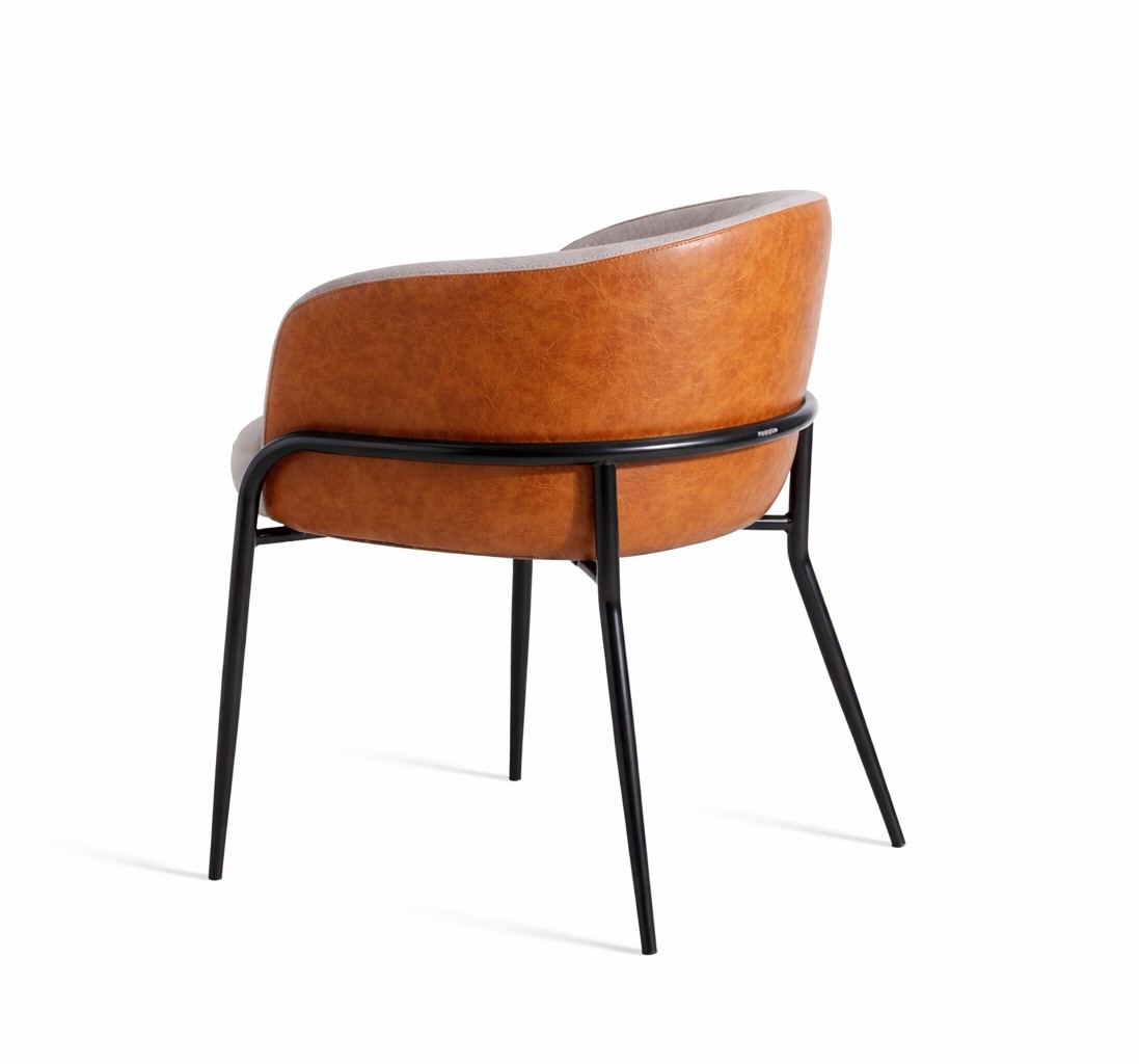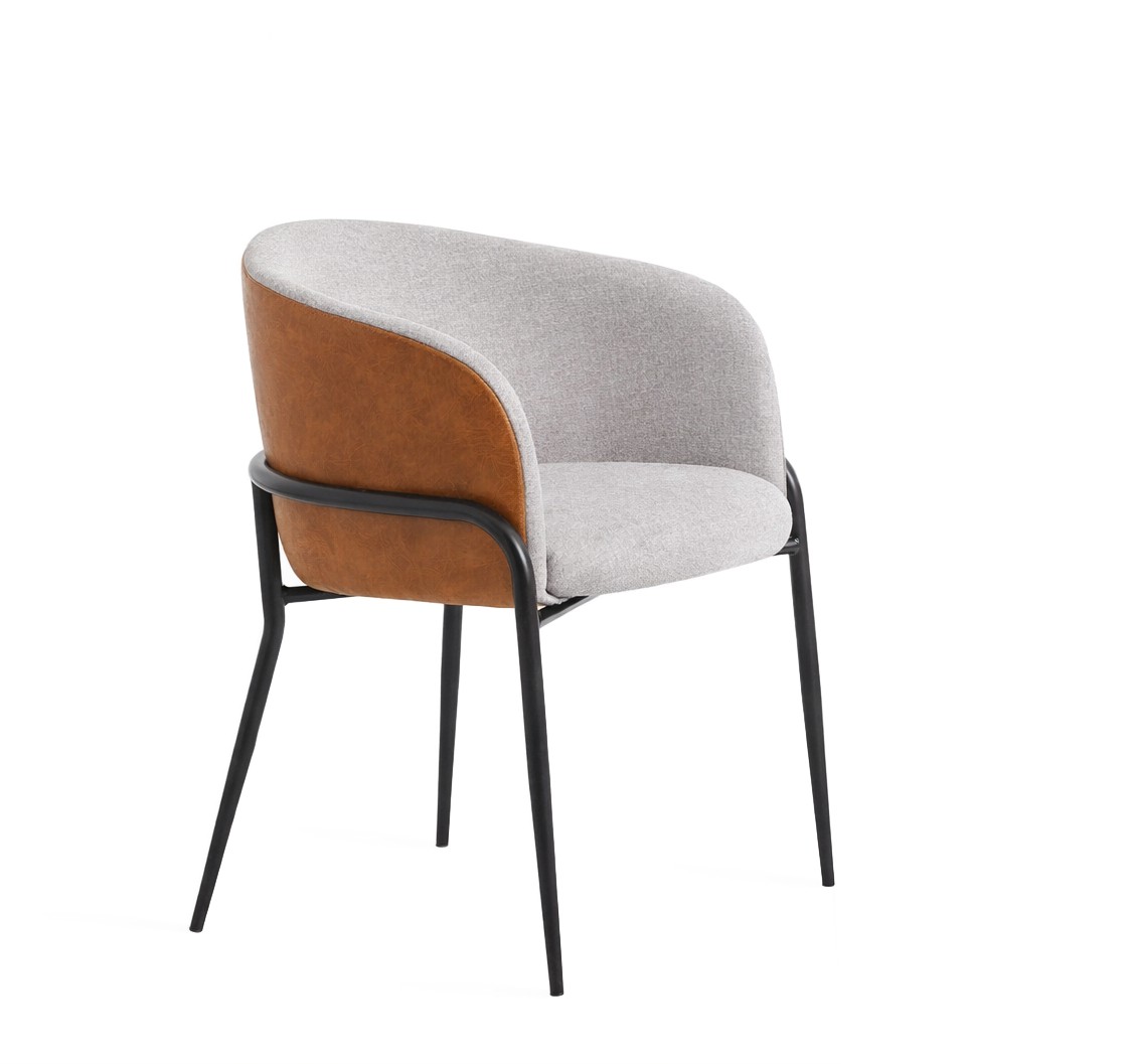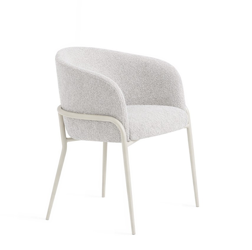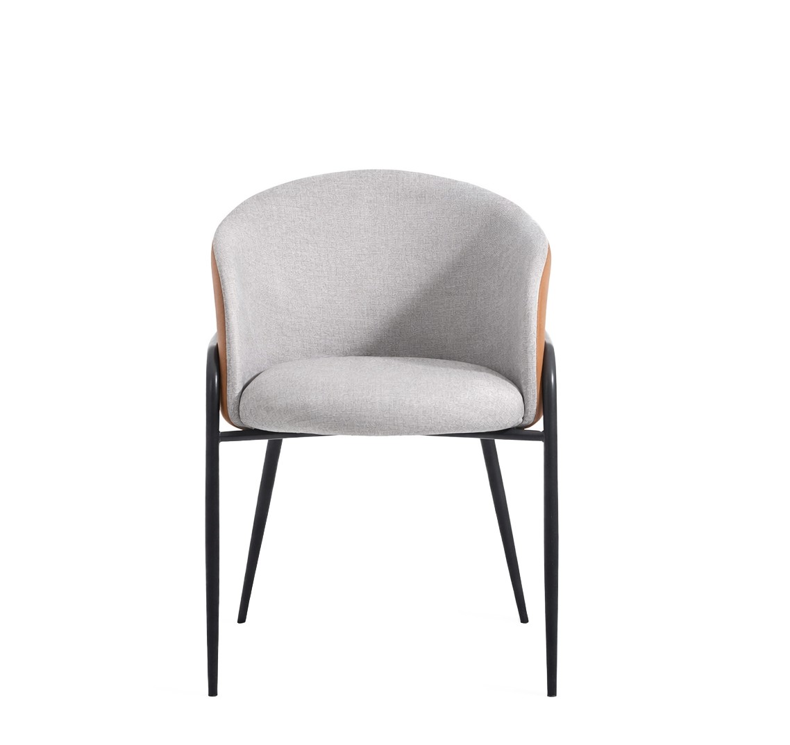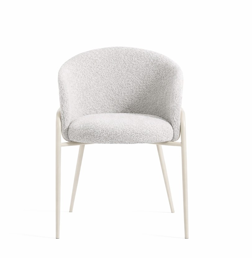 A cadeira Abraccio apresenta estrutura em metal, e seu assento e encosto são estofados.