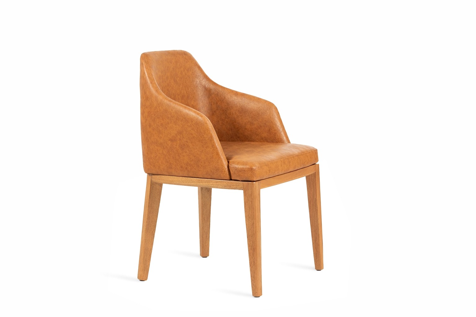 A cadeira Celine é produzida com estrutura em madeira maciça, somada ao assento e encosto estofados.