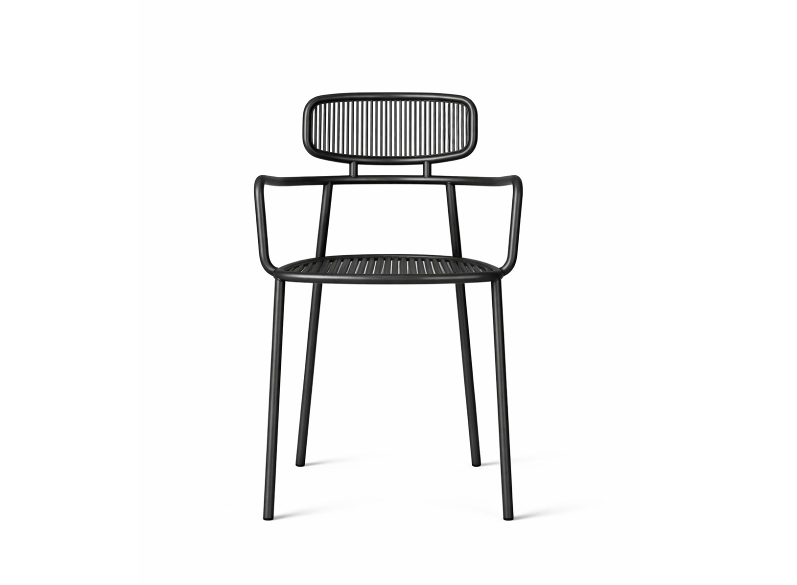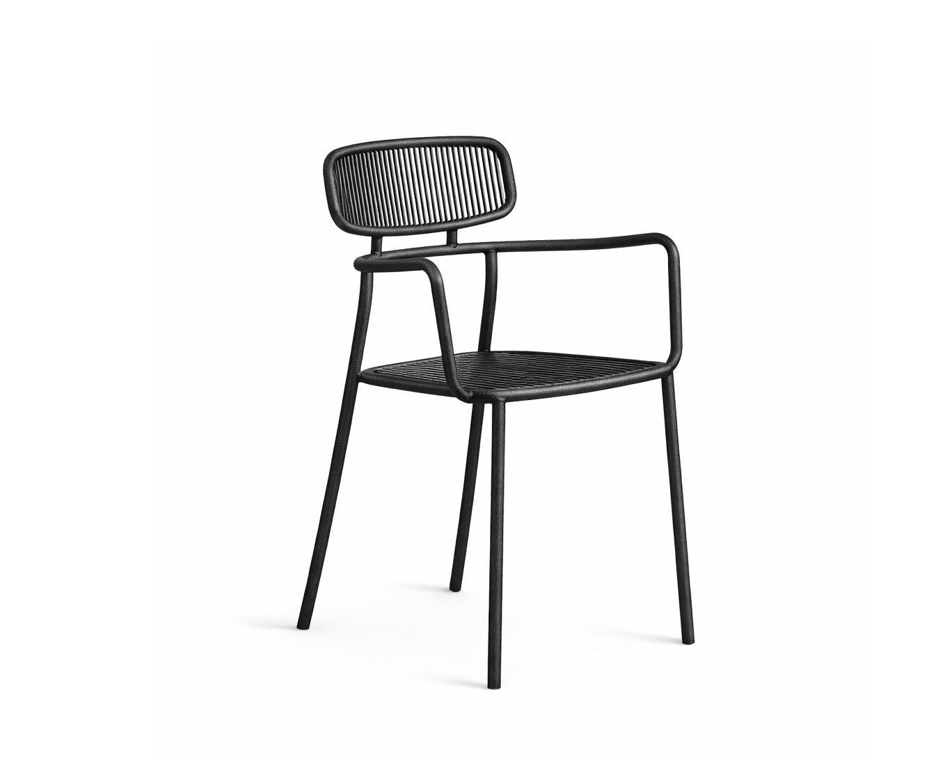 A cadeira Mallon tem sua estrutura em metal, e seu assento e encosto trefilados.