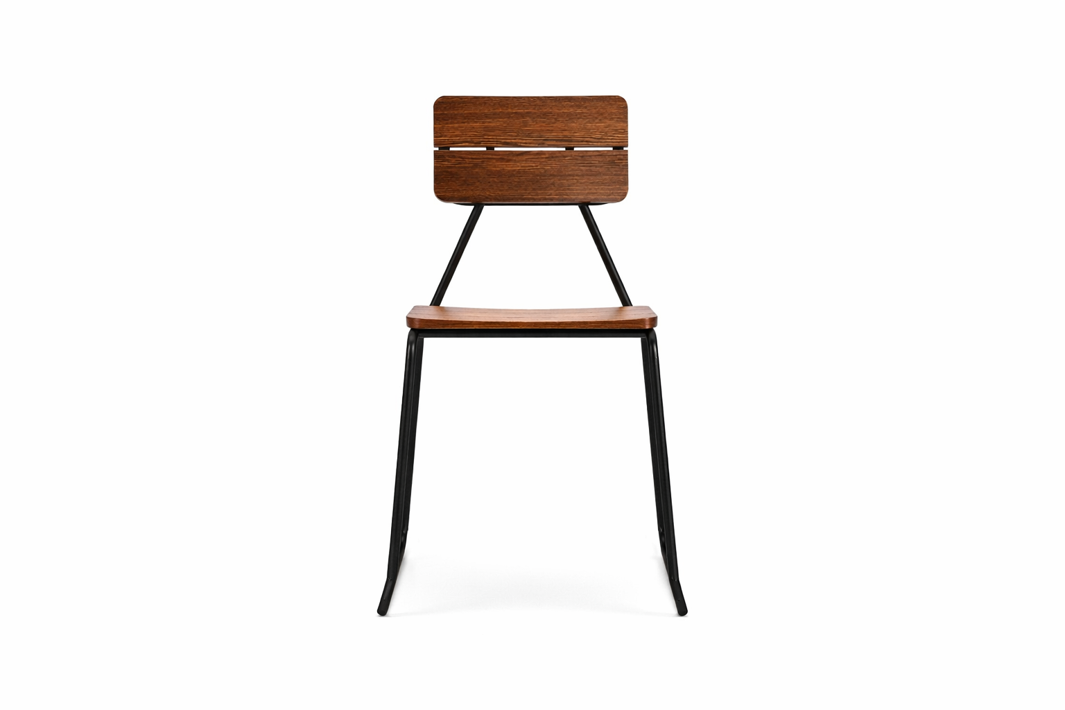 A cadeira Terrazo tem sua estrutura em metal, e seu assento e encosto possibilitam versatilidade nas opções em metal e madeira maciça.