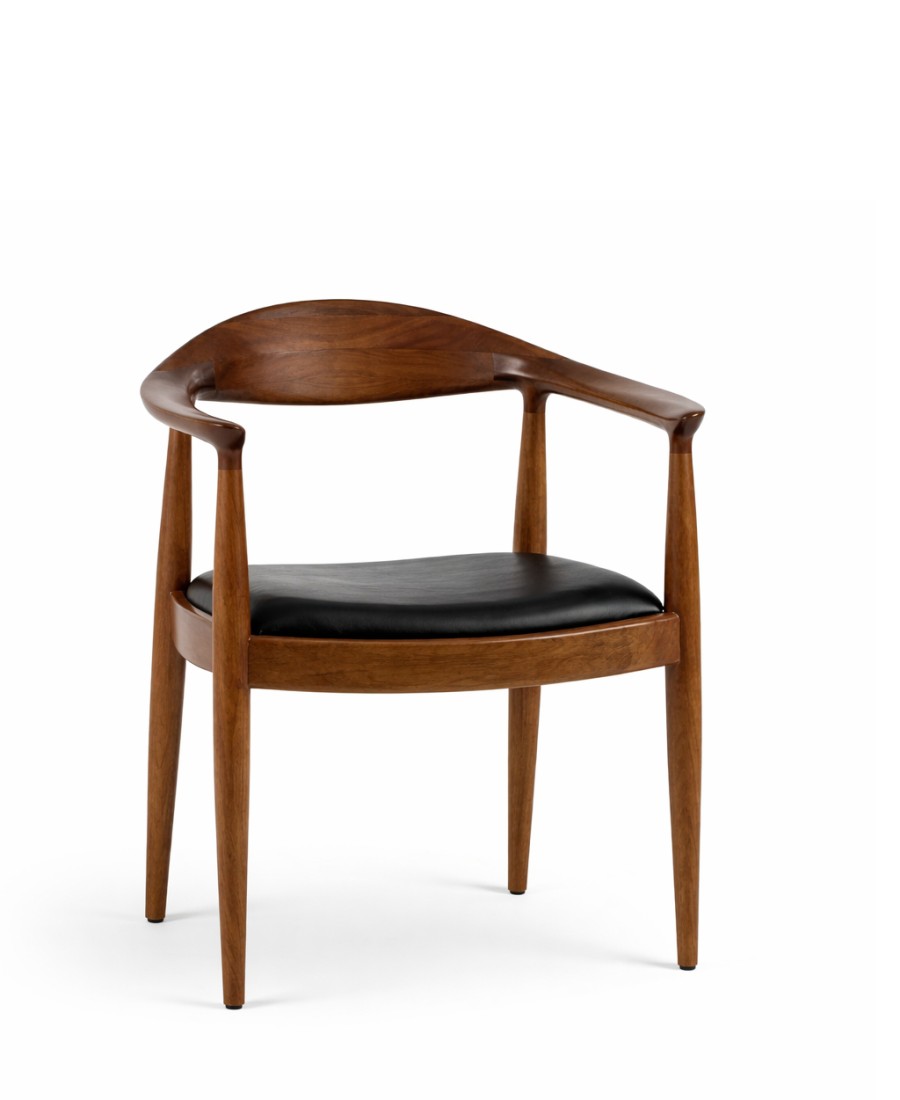 A cadeira The Chair tem estrutura e encosto em madeira maciça, e seu assento é estofado.