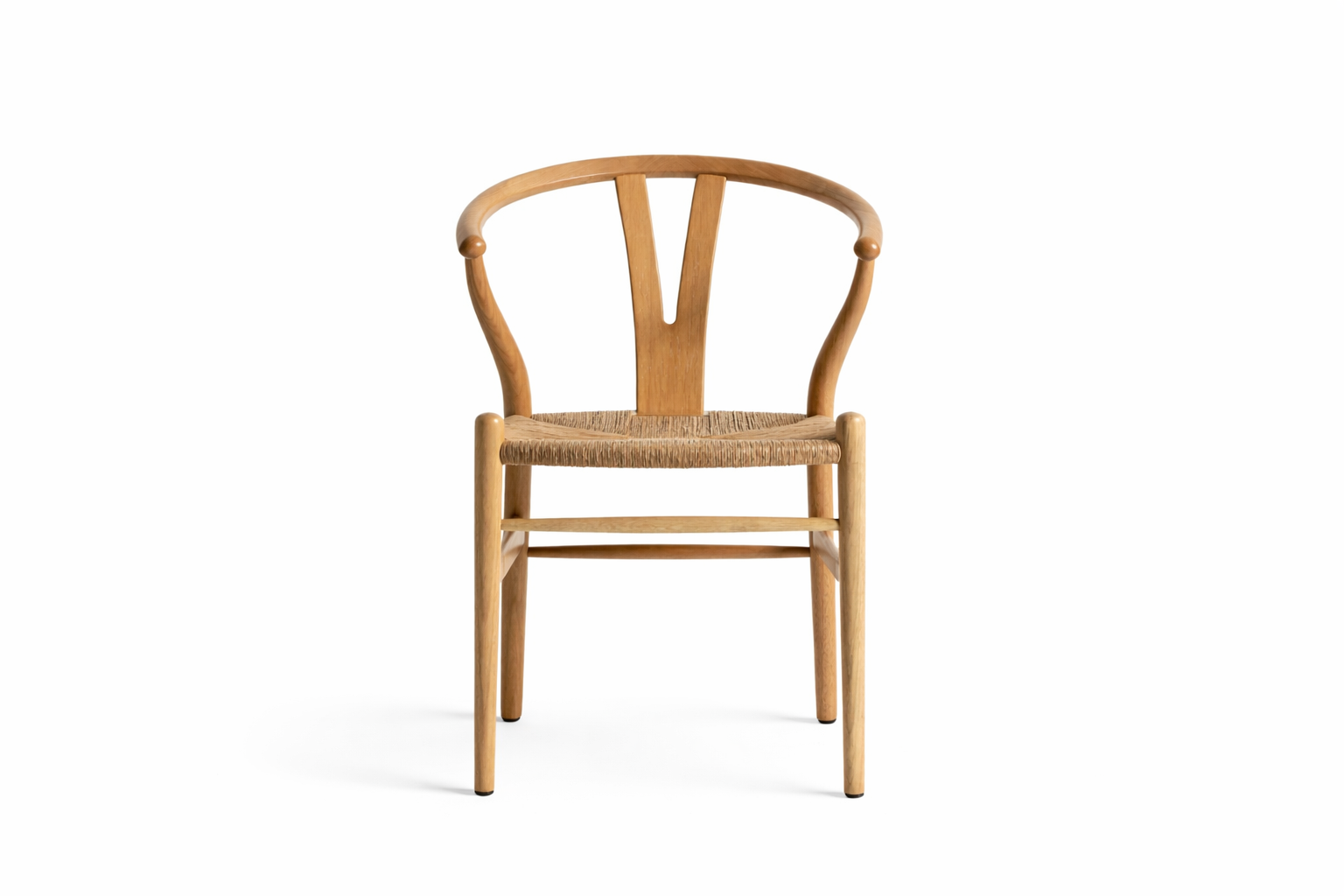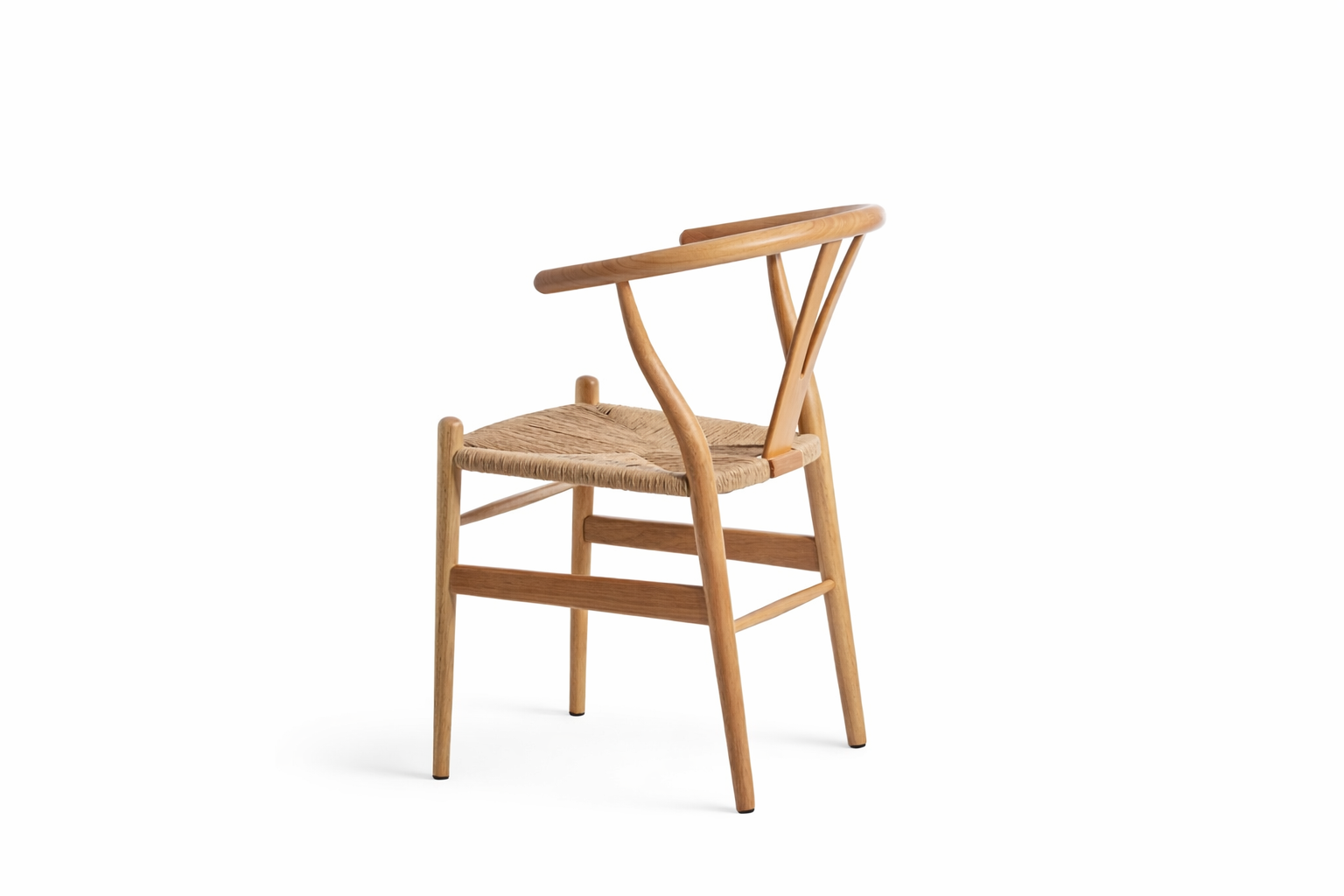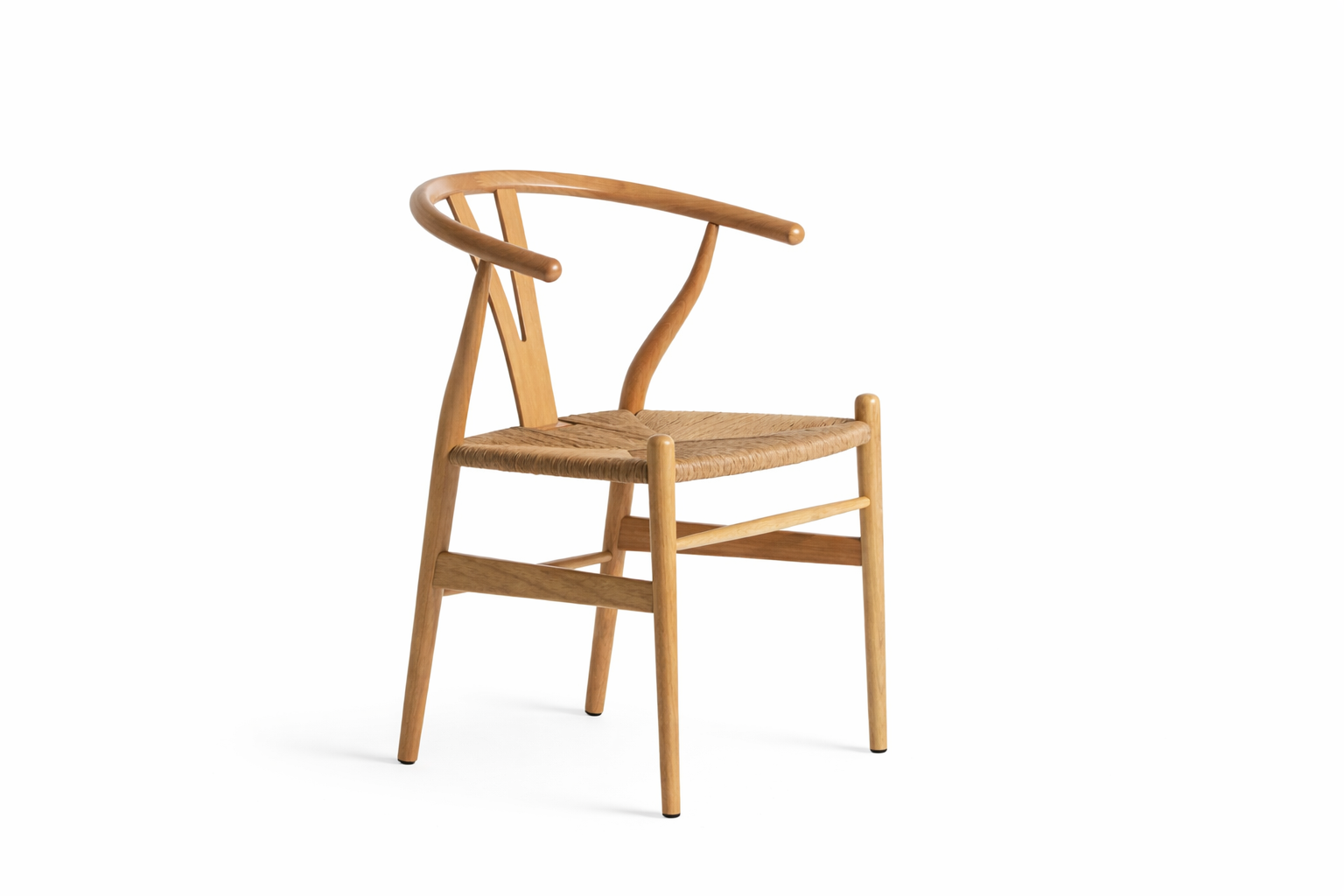 A cadeira Wishbone tem estrutura e encosto em madeira maciça, e em seu assento pode-se optar entre a versão em palha natural, ou estofada.
