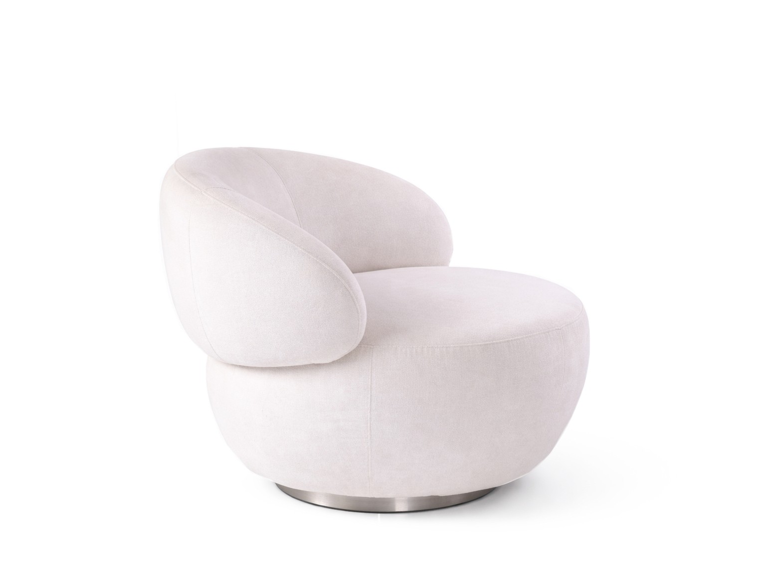 A poltrona Caju se destaca pelas linhas curvas que tangenciam seu perfil em uma suave forma de castanha, gerando uma simetria frontal que contrasta com seu corpo orgânico. O acabamento em tecido, somado a concha posterior que abraça a estrutura, remetem uma sensação de aconchego, mantendo a sofisticação e minimalismo que a peça dispõe.