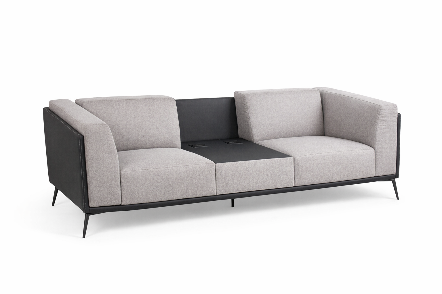 O sofá Connect tem sua base em metal, e seu assento e encosto estofados.