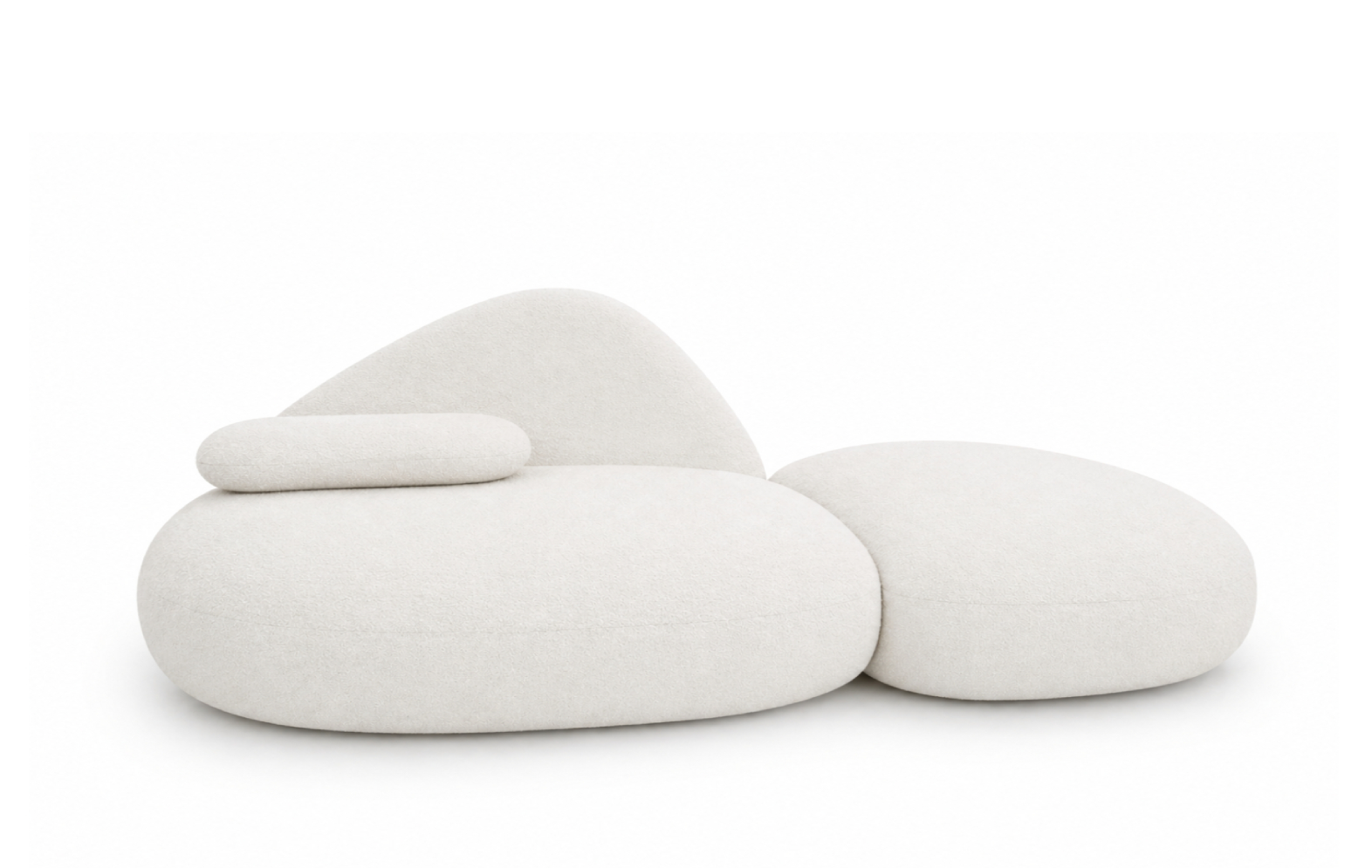 O sofá Duna nasce da suavidade das paisagens moldadas pelo vento, traduzindo em design o movimento fluido e natural das dunas. Suas curvas amplas e contínuas criam uma silhueta orgânica, que convida ao toque e ao descanso.