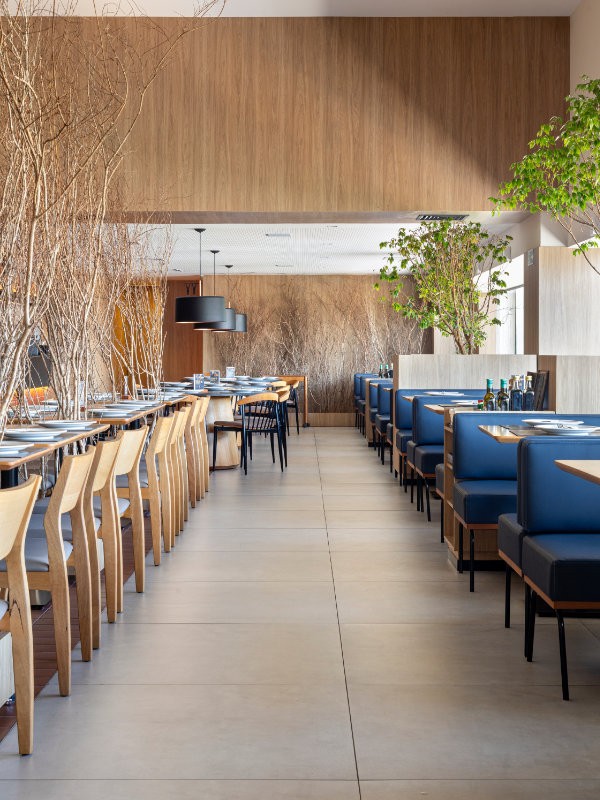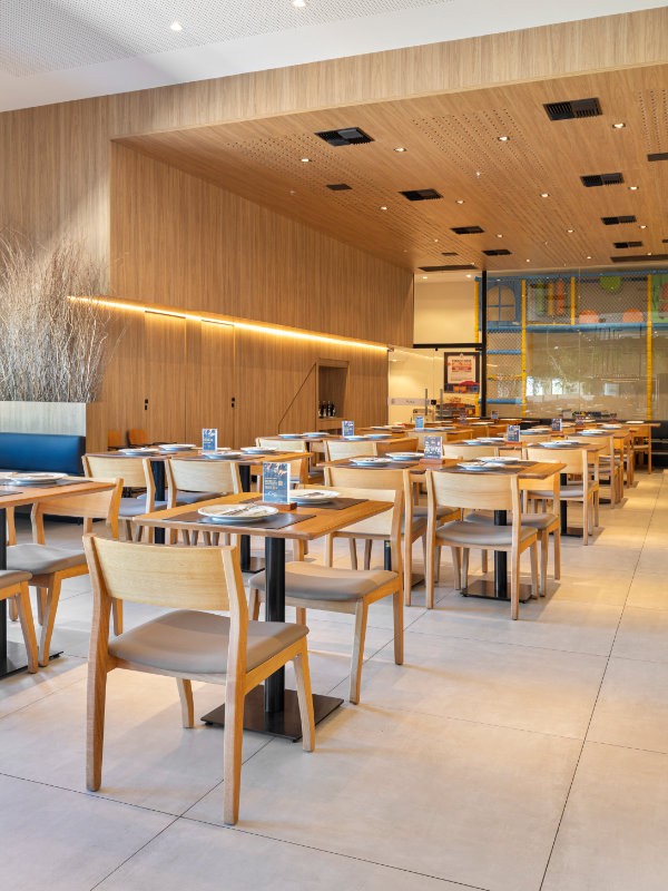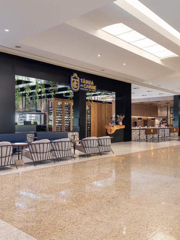 O Tábua de Carne está situado em uma área de grande circulação e se destaca pela atmosfera acolhedora que acompanha sua proposta gastronômica. Com materiais naturais e cores neutras, o mobiliário Tasselo se integra ao ambiente com ergonomia e durabilidade, sem abrir mão da elegância. Esse conjunto fortalece a identidade do restaurante e oferece uma experiência confortável mesmo em um espaço de alta rotatividade.